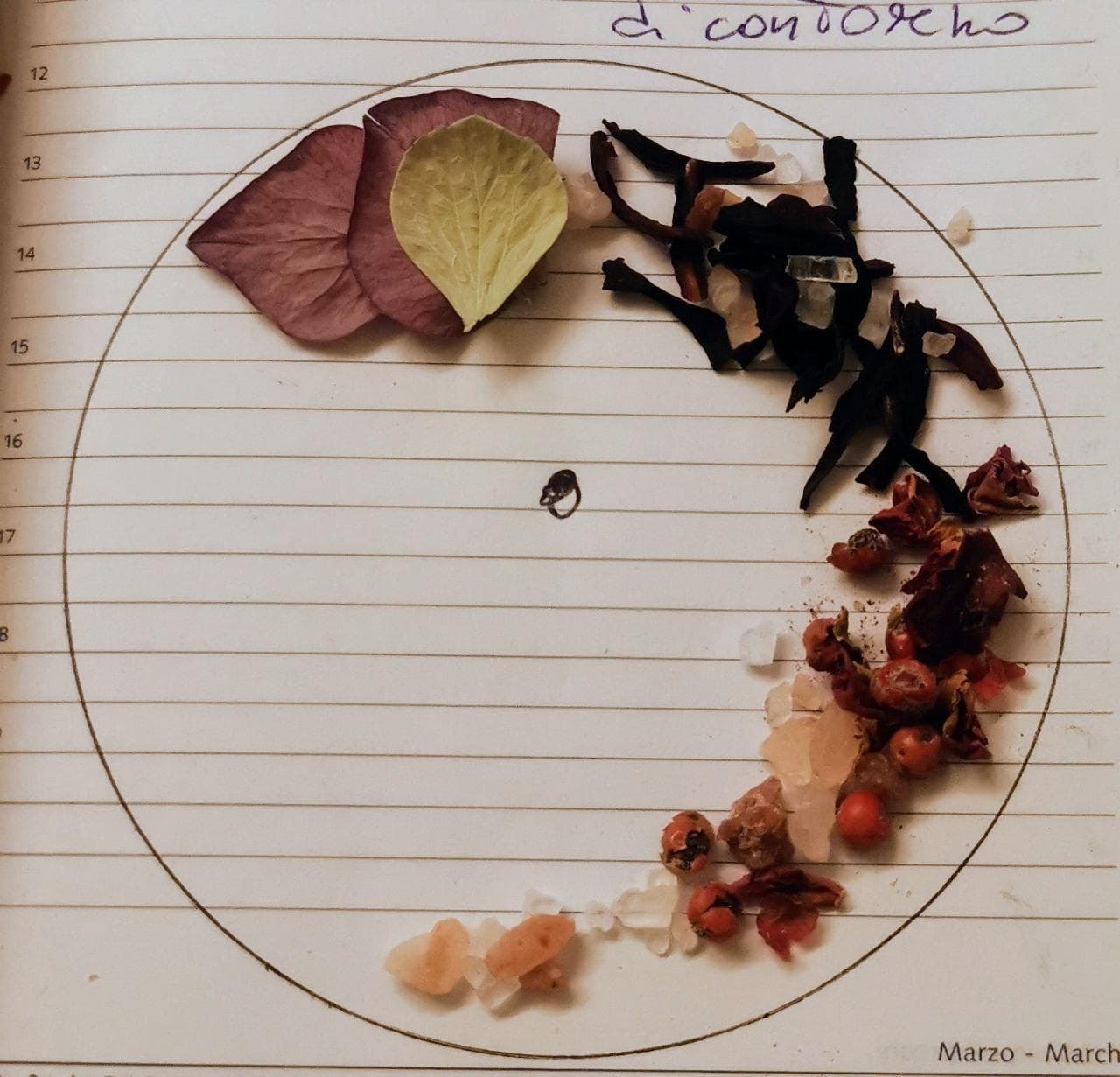 desunti dalla natura (fiori essiccati, spezie, cristalli);