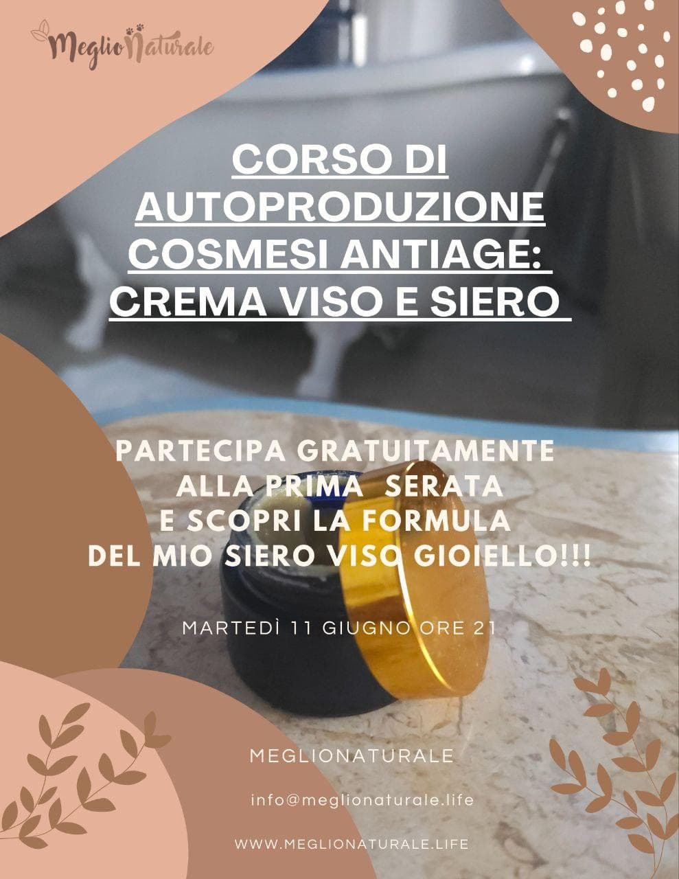 Avrai accesso GRATUITAMENTE alla Prima Preziosissima Lezione, che comprende 2 ore di formazione in diretta via Zoom (scaricalo gratis qui sul tuo pc o sul telefono cellulare, se ancora non ce l'hai) con me l'11 giugno alle ore 21 e LA MIA FORMULA DI SIERO VISO GIOIELLO!!!!